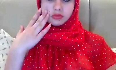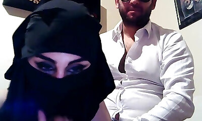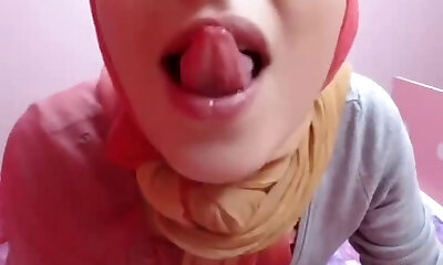 A hot slut in a hijab records a sex movie for her boyfriend where she drains
