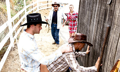 Wild bisexual guys take turns fucking each other and blondie Lucy Red