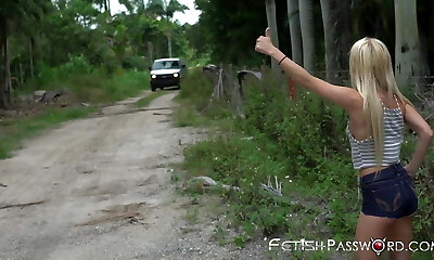 Petite blonde teen aggressively fucked and facialized in a van