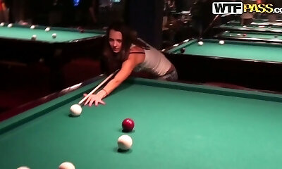 Cute brunette girl Nickel is playing games in a pub