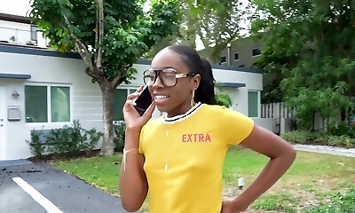 Dark-hued slut Amari Anne has to suck a man meat before getting fucked