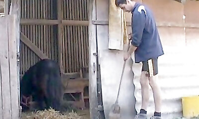 Old unshaved granny meets strong young guy