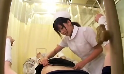 Asian nurse deep-throats a manhood and rides it in horny voyeur video