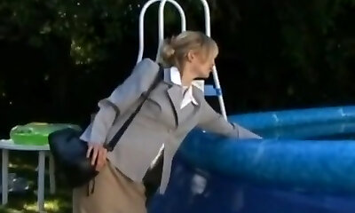Blonde Shorthair-Bbw-Milf with Glasses fucked by the Pool