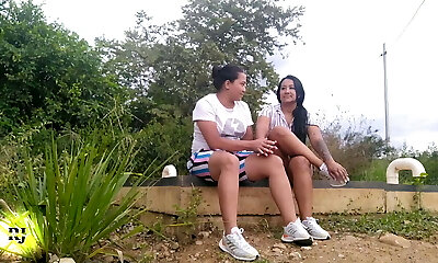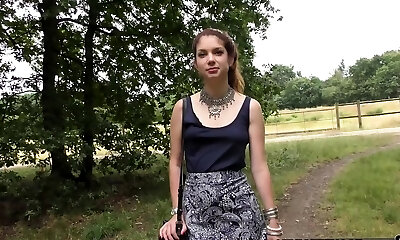 All Girl brunette gets fucked in a forest with a cable-on