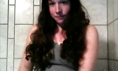 Long haired black head with ugly saggy pallid tits was wanking on webcam