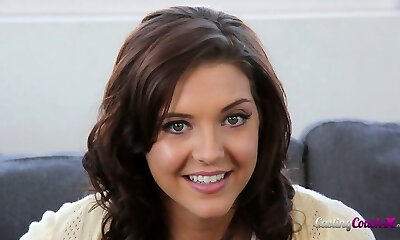 Cool brunette model needs to give a blow-job for her casting video