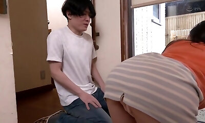 Retro brunette girl seduces a young boy for sex