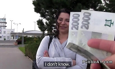 Brunet busty stranger gives a oral pleasure and gets plowed for money