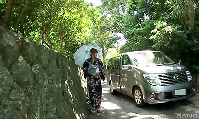 Kimono girl in a van sucks manmeat and gets toy boinked