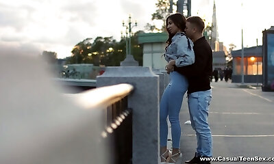 Beautiful fresh girl with juicy titties Renata Fox rides big spear outdoors