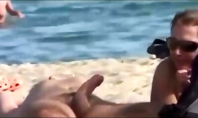 Beach handjob fun