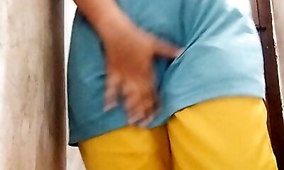 milking in front of the window for a guy observing outside