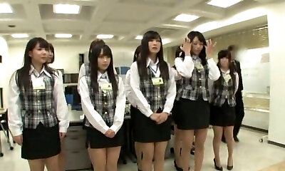 Hot Japanese teens in school uniforms in hot group function