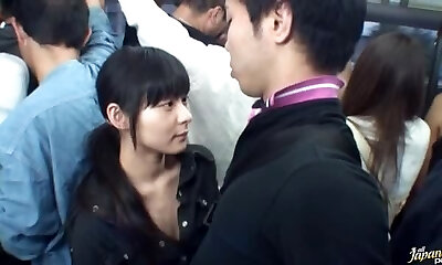 Naughty Teenager AV Gal On The Bus Jerks Her Beau Until He Cums