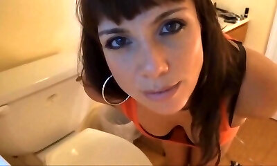 Chunky white girl with chubby booty pissing on cam in the toilet