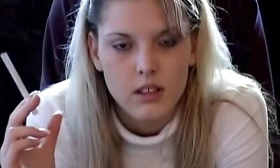 Naughty Blonde Seduces A Hot Boy And Smokes While Giving He