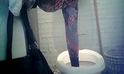 Arab woman goes piss in a public toilet