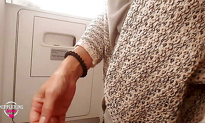 nippleringlover horny milf pissing on public toilet in airplane showing pierced pussy and extreme pierced nipples