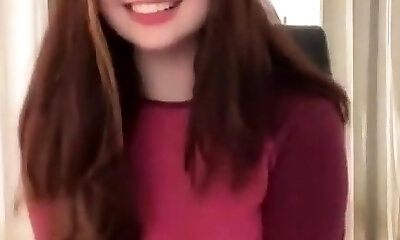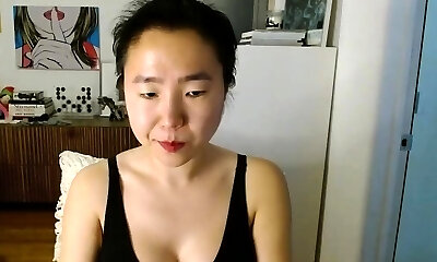 Lean camgirl with small tits masturbating and chating in front of the cam