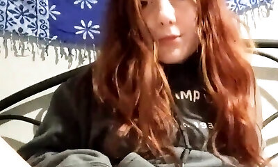 This nerdy redhead loves fingering her smooth vulva and anus on cam